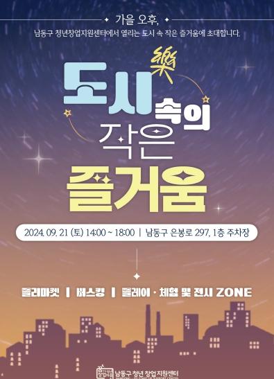 이번 기획전은‘도시:락(樂)’도시 속 작은 즐거움을 주제로 작년에 이어 두 번째로 열리며, 남동구청년창업지원센터 입주기업과 유관기관 등 25개 청년창업 기업이 참여한다.