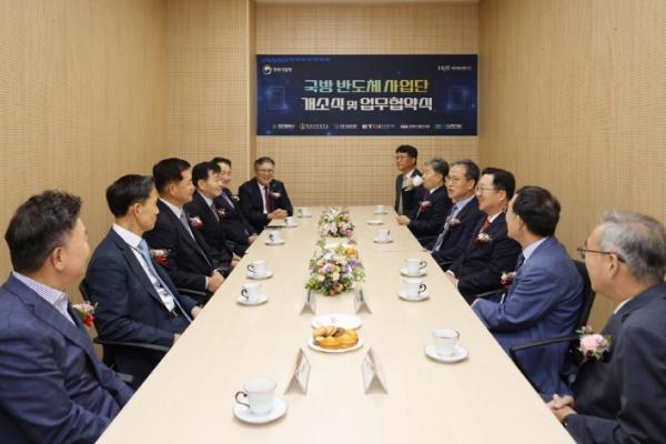 이날 개소식에는 석종건 방위사업청장을 비롯해 국방?민간 출연기관장, 국방혁신소위 관계자 등 70여 명이 참석한 가운데 제막식, 업무협약, 국방반도체 발전전략 발표순으로 진행됐다.