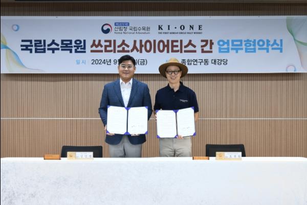 산림청 국립수목원(원장 임영석)은 ㈜쓰리소사이어티스와 오늘(20일) 국가 산림생물자원을 활용한 협업제품 생산을 위한 업무협약을 체결했다.