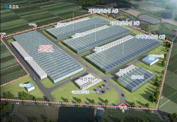 양산면 가곡리 일원에 추진 중인 대규모 스마트팜단지는 지난해 지방소멸대응기금으로 선정된 ‘청년 임대 일라이트 스마트팜 단지’와 올해 상반기 농림축산식품부 공모사업으로 선정된‘지역특화 임대형 스마트팜 단지’로 부지 10.5ha 규모에 온실면적 6.15ha로 2026년까지 조성된다.