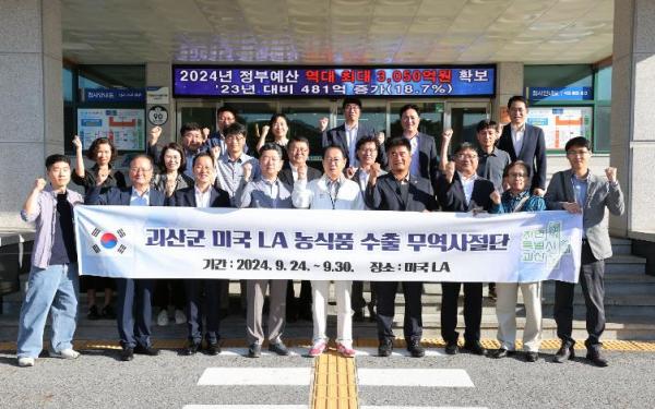 24일 송인헌 괴산군수를 비롯해 관계 공무원 및 농식품 기업 관계자 13명으로 구성된 해외무역사절단이 LA 한인축제 판촉전과 미주 홈쇼핑 참가를 위해 미국으로 출국했다.