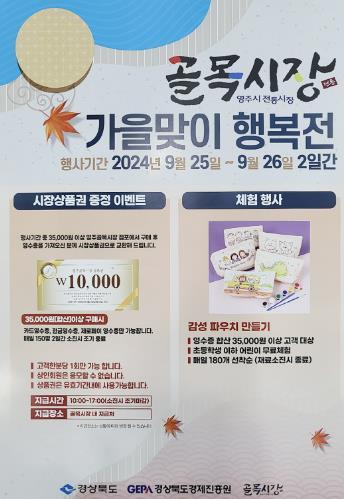 영주 골목시장(영주로 192번길 2 일원)에서는 오는 25일부터 26일까지 이틀간, ‘고향시장 행복어울림마당 가을맞이 행복전’ 행사가 열린다.