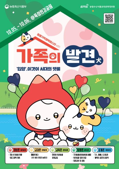 한편, 농식품부는 10월 5일부터 10월 6일까지 뚝섬 한강공원 수변무대 주변에서 서울시와 함께 동물복지 인식개선 및 성숙한 입양 문화조성을 위한 행사를 개최한다. 이번 행사에는 누누·해삐·또 거대 조형물을 활용한 포토존과 함께 리유저블백, 선바이저 등 다양한 기념품이 준비되어 있다.