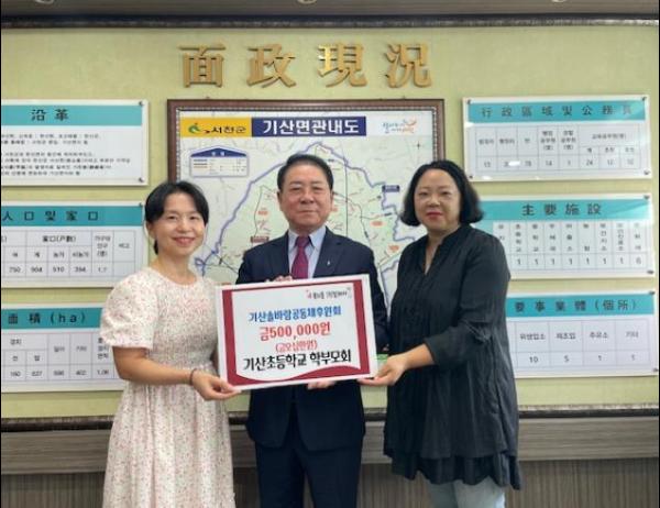 서천 기산초등학교 기고만장 봉사활동 동아리는 지난 24일 취약계층을 돕고자 기산솔바람공동체후원회에 50만원을 기탁했다.