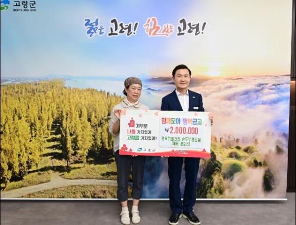 성산면에 위치한 언덕위빨간집 순두부전문점에서 9월 24일 고령군청을 방문하여‘함께모아 행복금고’성금 200만원을 기탁했다.