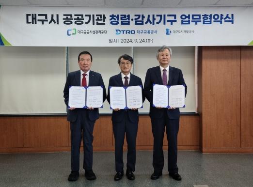 대구공공시설관리공단, 대구교통공사, 대구도시개발공사 3개 기관은 '대구시 공공기관 청렴·감사기구 협의체'를 발족하며, 청렴도 향상과 감사업무 선진화를 위해 협력하기로 했다.