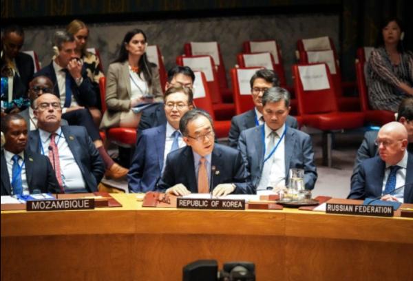 제79차 유엔총회 고위급회기에 참석 중인 조태열 외교장관은 24일 오후(뉴욕시간) 유엔 본부에서 개최된 유엔 안보리 우크라이나 고위급 공식회의에 참석했다.
