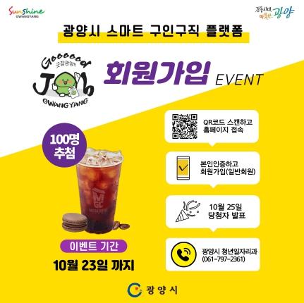 광양시는 10월 23일까지 기업과 구직자 모두에게 양방향으로 종합 일자리 정보를 제공하는 스마트 구인구직 플랫폼'굿잡광양'활성화를 위해 회원가입 이벤트를 진행한다고 밝혔다.