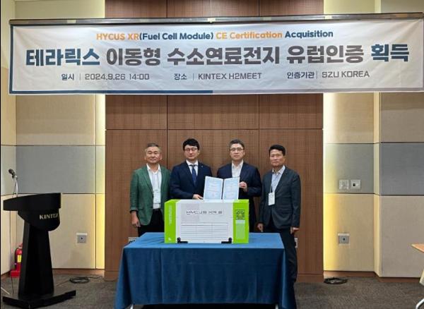 김태영 테라릭스 대표는 “이번에 획득한 CE인증은 테라릭스가 추구하는 비전인 인류가 필요한 솔루션보다 더 높은 수준을 지속적으로 제공하는 에너지 선도기업으로써의 도약의 계기가 됐다”며 “2026년 IPO를 목표로 세계 최고 수준의 수소연료전지 기술 확보에 주력하겠다”고 포부를 밝혔다.