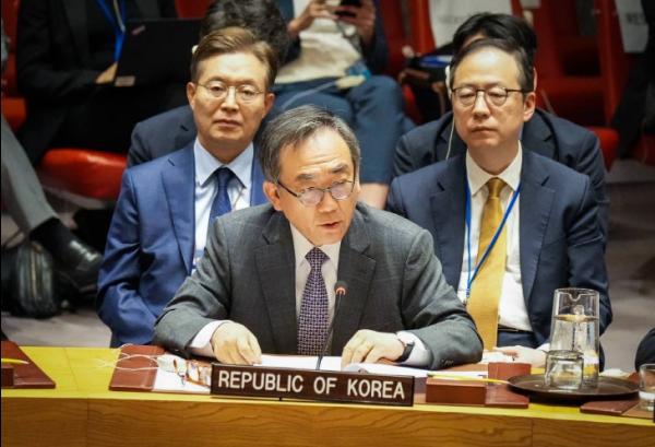제79차 유엔총회 고위급회기에 참석 중인 조태열 외교장관은 9월 25일 오전(뉴욕시간) 유엔 본부에서 개최된 유엔 안보리의 ‘평화를 위한 리더십’ 공개토의에 참석했다.