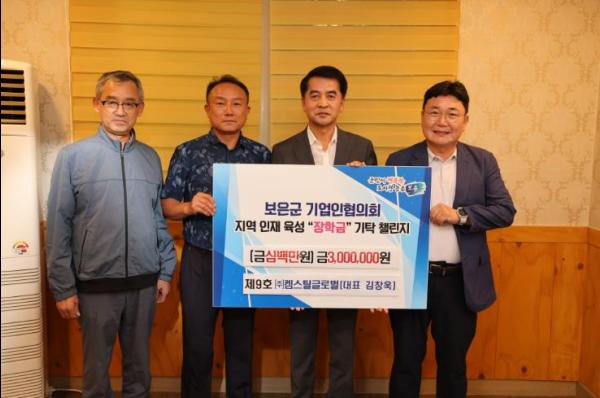 보은군에서 ㈜켐스틸글로벌를 운영 중인 김창욱 대표는 27일 보은군청을 방문해 지역 인재 육성에 써달라며 장학금 300만 원을 보은군민장학회에 기탁했다.