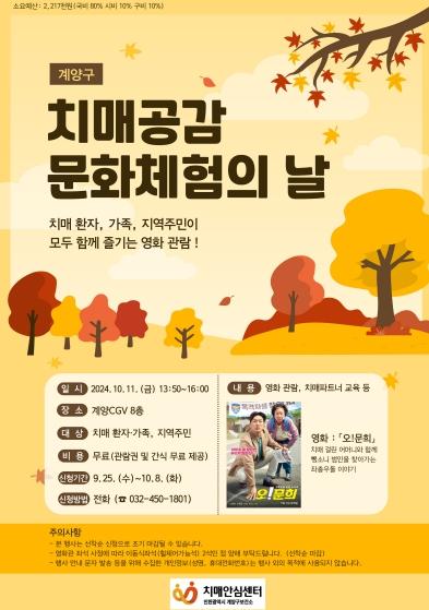인천광역시 계양구는 오는 10월 11일 오후 2시 계양CGV에서 ‘치매공감 문화체험의 날’ 행사를 개최한다고 밝혔다.