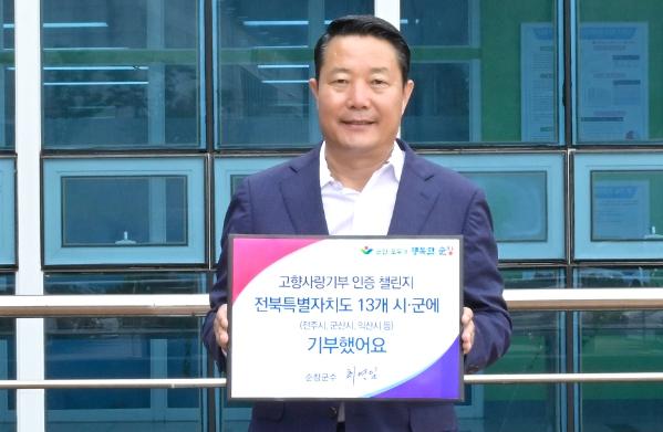 최영일 순창군수가 지난 27일 2년 연속으로‘고향사랑기부 인증 챌린지'에 참여하며 지역 발전을 위한 의지를 다졌다.