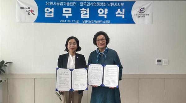 남원시농업기술센터는 이를 위해 한국외식업중앙회 남원시지부와 협력체계를 구축하고, 9월 27일에 양 기관 간 업무협약(MOU)을 체결했다.