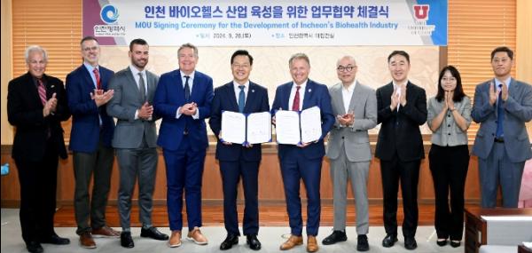 인천광역시는 9월 28일 인천시청에서 미국 유타대학교와 바이오 분야 협력을 강화하기 위한 업무협약을 체결했다고 밝혔다.