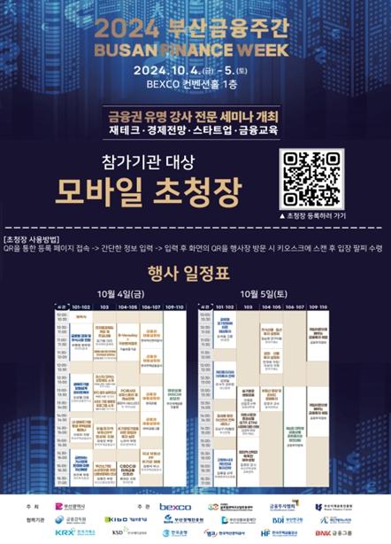 자세한 정보는 2024 부산금융주간 누리집에서 확인할 수 있으며, 사전등록자 대상 경품 추첨 이벤트도 함께 진행하고 있다.
