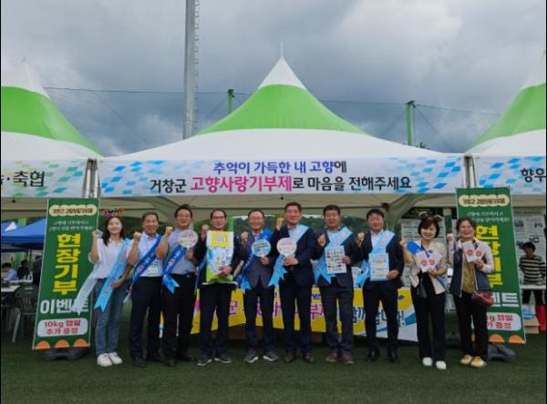 특히, 전국거창향우연합회 체육대회 행사에서 신철범 향우연합회장이 500만 원, 경남도청 아림회에서 500만 원, 유병직 재김해거창군향우회장이 100만 원, 한상락 재창원거창군향우회 사무국장이 100만 원 등 30여 명이 동참하여 거창군 고향사랑기부제를 알리는데 큰 역할을 했다.