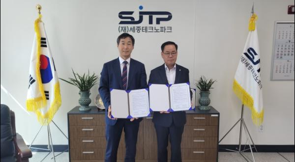 (재)세종테크노파크와 세종일자리경제진흥원은 30일 세종테크노파크 본관동 회의실에서 세종 중소벤처기업 성장지원과 경쟁력 강화를 위한 업무협약식을 개최했다.
