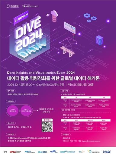 부산시(시장 박형준)는 오는 4일부터 6일까지 3일간 벡스코에서 '글로벌 데이터 해커톤 대회' '다이브(DIVE) 2024'를 올해 처음 개최한다고 밝혔다.