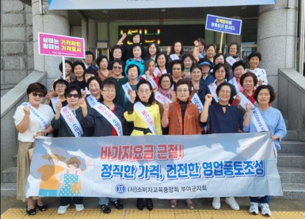 백제문화제 기간을 맞아 부여군을 방문하는 관광객을 위해 바가지요금 근절 등 공무원, 소비자교육중앙회 부여군지회 회원 등 40여 명이 모여 캠페인을 진행했다.