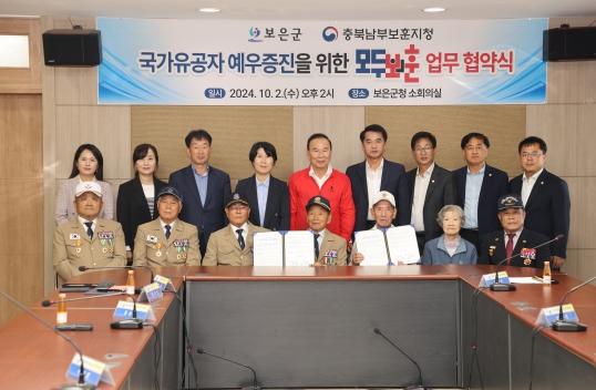 보은군과 충북남부보훈지청은 2일 보은군에 거주하는 보훈대상자의 예우 및 복리증진을 위한 상호협력 체계 구축을 위해 업무협약을 체결했다.