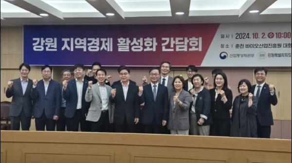 10월 2일 춘천바이오산업진흥원에서 진행된 간담에서는 도와 춘천시, 한국산업단지공단 강원지역본부 등 6개 유관기관과 메디언스 등 7개 바이오기업이 참석했다.
