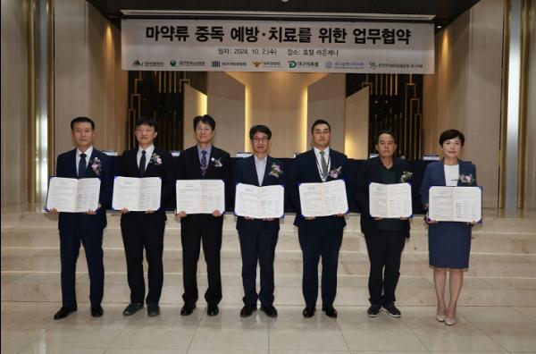대구광역시와 한국마약퇴치운동본부 대구지부는 10월 2일, 호텔라온제나에서 마약류 중독 확산에 대비하여 총 7개 유관기관간 협력 강화를 위해 ‘마약류 중독 예방·치료를 위한 업무협약 및 심포지엄’을 개최했다.