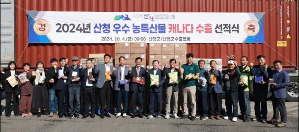 산청군은 4일 생비량면에 위치하고 있는 ㈜미미에프에서 ‘우수 농특산물 캐나다 수출 선적식’을 가졌다고 밝혔다.