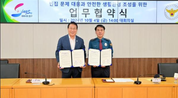 김진홍 동구청장은 “이번 동부경찰서와의 협약을 통해 오랫동안 주민들의 불안요소였던 빈집 문제에 효과적으로 대응하고, 주민들이 안전하게 생활할 수 있는 환경을 조성함은 물론, 범죄 예방과 공공 안전을 위한 적극적인 대응이 가능하게 됐다”고 밝혔다.
