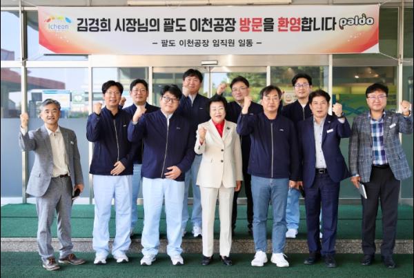 김경희 이천시장은 10월 8일, 이천시 부발읍 무촌리 소재의 ㈜팔도 이천공장을 방문하여 기업체 관계자를 만나 애로사항을 청취하고 현장을 둘러보며 회사 관계자를 격려했다.