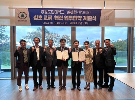 강원도립대학교는 10월 8일 설해원과 지역관광산업 발전 및 전문 인력 양성을 위한 상호 교류ㆍ협력 업무협약을 체결했다.