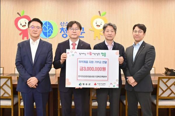 한국자산관리공사 대구경북지역본부는 지난 10월 7일, 청송군의 취약계층 지원을 위하여 3백만원을 기부했다.