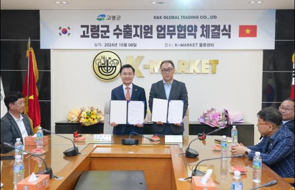 K-마켓 본사 물류센터에서 진행된 협약식에는 이남철 군수와 김기창, 성낙철 군의원, 김종태 고령군상공협의회장, K-마켓 신영화 총괄사장이 참석했으며, 무역사절단 참가기업인 엠스푸드(냉동피자), 밥달라스(김), 이엔비무역(신선식품 등)은 제품 홍보 및 시식행사를 가졌으며, 고령군 우수 농특산물 및 가공식품의 베트남 수출 확대 및 유통 활성화를 위해 상호 협력하기로 했다.