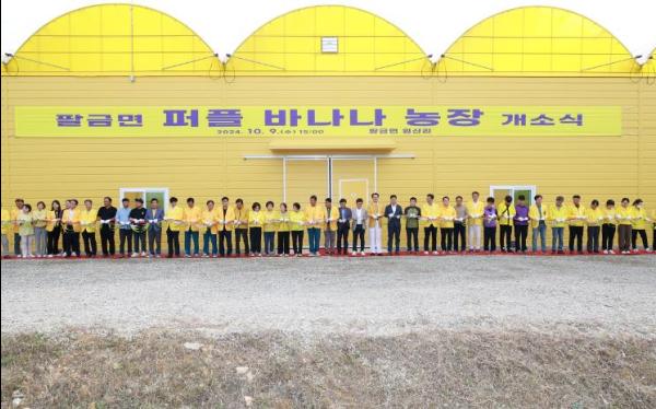 이번에 문을 연 퍼플 바나나 농장은 지방소멸대응기금과 군비를 포함 총 1,550백만 원의 사업비가 투입돼 복합환경제어시스템과 난방시설 및 자동 양액설비 등을 갖춘 6,006㎡ 규모의 내재해형 스마트 온실로 지어졌다.