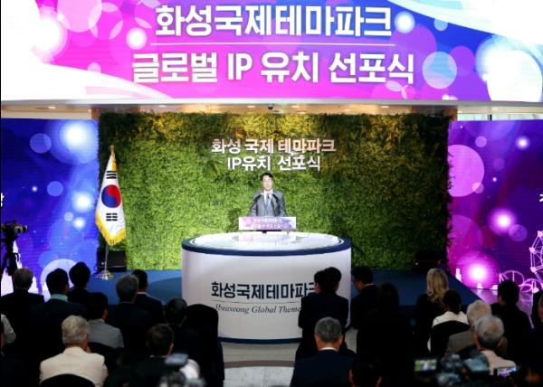 10일 화성시는 시청 로비에서 경기도, 신세계화성, 파라마운트 글로벌(Paramount Global, 이하 파라마운트)과 함께 ‘화성국제테마파크 글로벌 IP사 유치 선포식’을 열고, 4개 기관이 손잡고 파라마운트 브랜드 테마파크 조성을 위한 대대적인 동행을 시작한다고 밝혔다.