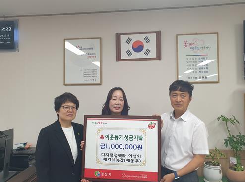 경산시 디지털정책과 관제센터에 근무하는 이성희 씨(채가네농장 대표 채동우)가 최근 포도 판매 수익금 일부를 지역사회 불우이웃을 돕기 위해 기부했다.