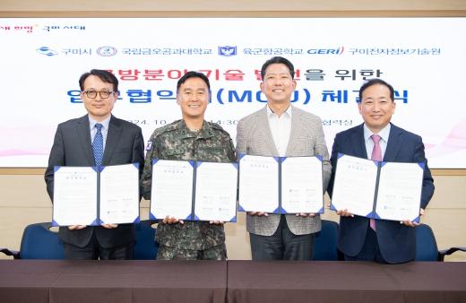 구미시는 10일 시청 국제통상협력실에서 국립금오공과대학교, 육군항공학교, 구미전자정보기술원 4개 기관과 항공 유무인복합체계 등 국방분야 기술 발전을 위한 업무협약(MOU)을 체결했다.