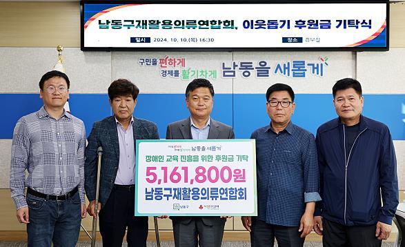 성금은 남동구 재활용의류연합회의 헌옷 수거함 사업 수익금을 모아 마련되었으며, 장애인 교육문화협회 인천시회로 전달되어 정보 취약계층인 장애인을 대상으로 한 디지털 정보화 교육에 지원될 예정이다.