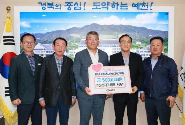 김학동 예천군수는 “고향에 대한 애정으로 여러 분야에서 도움을 주고 계신 서종수 회장님께 깊이 감사드린다.”며 “예천사랑기부제가 계속 활발히 추진되어 지역 발전의 밑거름이 될 수 있도록 더욱 힘쓰겠다.”고 말했다.