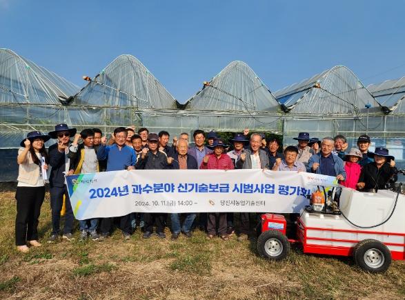 당진시농업기술센터는 11일 50여 명이 참석한 가운데 과수 분야 신기술 보급 시범사업 평가회를 개최했다.