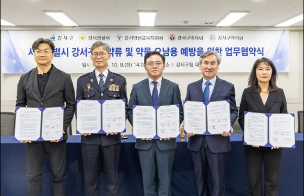 구는 지난 8일 구청에서 강서경찰서, 강서양천교육지원청, 강서구의사회, 강서구약사회와 5자간 마약류 및 약물 오남용 예방을 위한 업무협약을 체결했다.