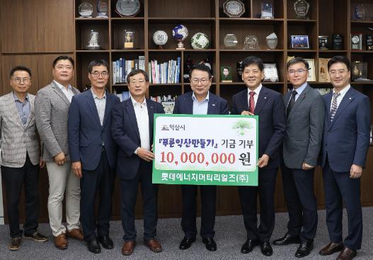 익산시는 롯데에너지머티리얼즈㈜가 11일 시청을 방문해 녹색정원도시 조성에 동참하고자 1000만 원을 기탁했다고 밝혔다.