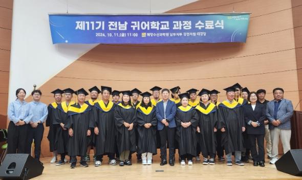 전라남도해양수산과학원은 11일 강진에 있는 전남 귀어학교에서 제11기 교육생 수료식을 개최, 18명의 예비 어업인을 배출했다.