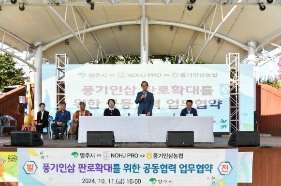 영주시는 11일, 풍기인삼축제장에서 NOHJPRO 및 풍기인삼농협과 업무협약을 체결하며 인삼 산업의 발전을 위한 새로운 장을 열었다.