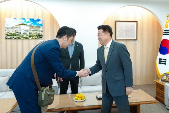 오영훈 지사는 11일 오후 4시 집무실에서 재일본 관서 제주도민협회청년회와 제주도연합청년회 임원들과 간담회를 가졌다.