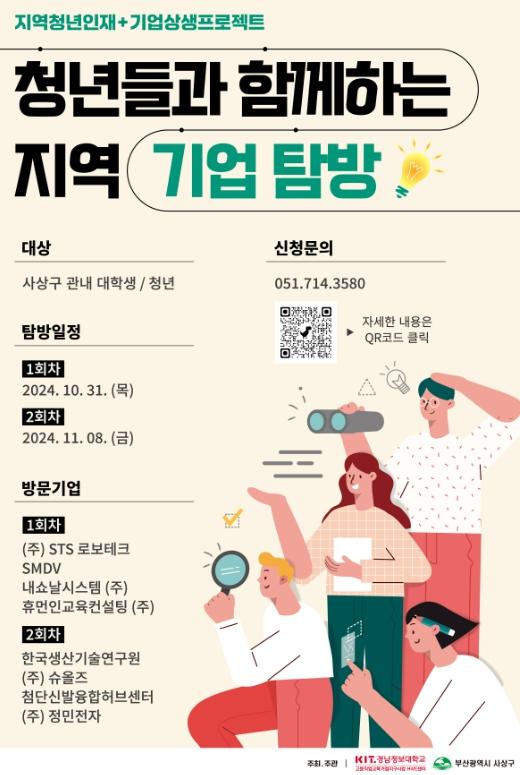 사상구는 지역 청년들의 사상공단 내 기업에 대한 이미지를 개선하고 관심도 제고를 위하여 ‘청년들과 함께하는 우수기업 탐방’ 프로그램을 오는 10월 31일과 11월 8일에 추진한다.