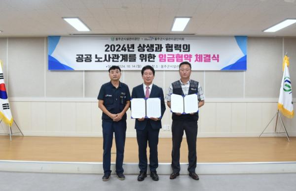 울주군시설관리공단과 전국공공운수사회서비스노동조합 울산지역본부 울주군시설관리공단지회는 14일 공단 대회의실에서 2024년 임금협약을 체결했다.