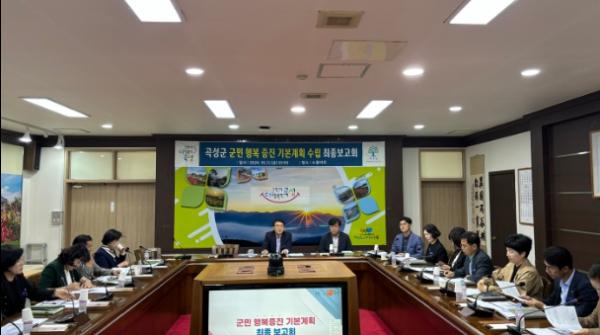 곡성군은 최근 이귀동 군수 권한대행을 비롯한 실과소장 등 23명의 관계자가 참석한 가운데 '군민 행복 증진 기본계획 수립 최종 보고회'를 개최하고 군민의 행복 증진을 위한 다양한 방안을 논의했다고 전했다.