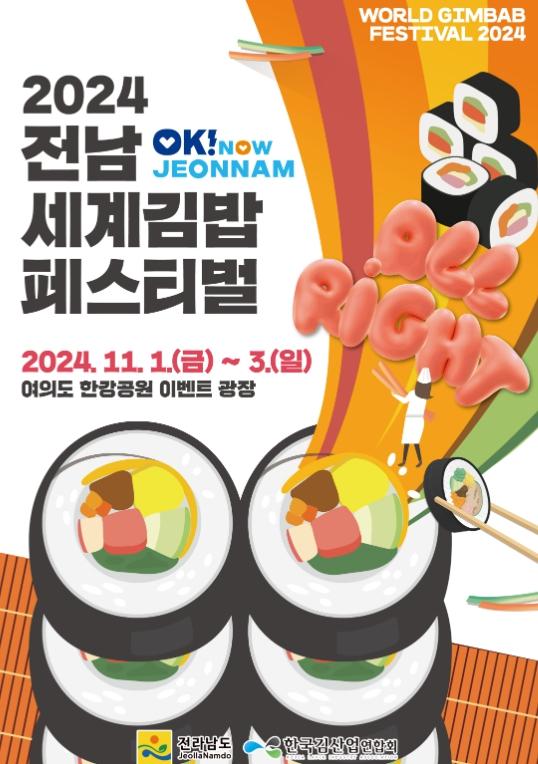 전라남도는 오는 11월 1일부터 3일까지 서울 여의도한강공원에서 내외국인이 참여하는 2024 전남 세계 김밥 페스티벌을 개최한다고 밝혔다.