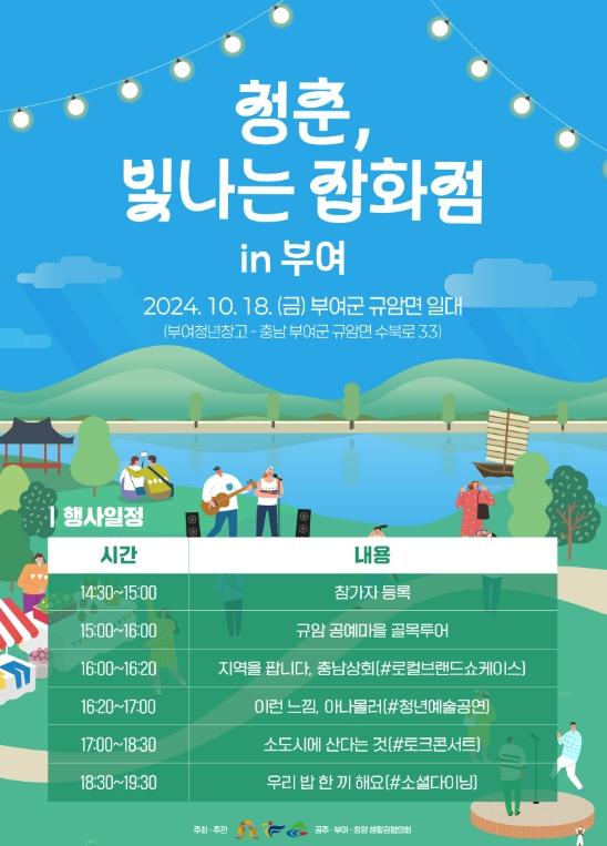 ‘청춘, 빛나는 잡화점 in 부여’는 청년들의 지역정착 사례를 공유하고 실질적인 공감과 소통을 위해 다양한 프로그램을 진행할 예정이다.